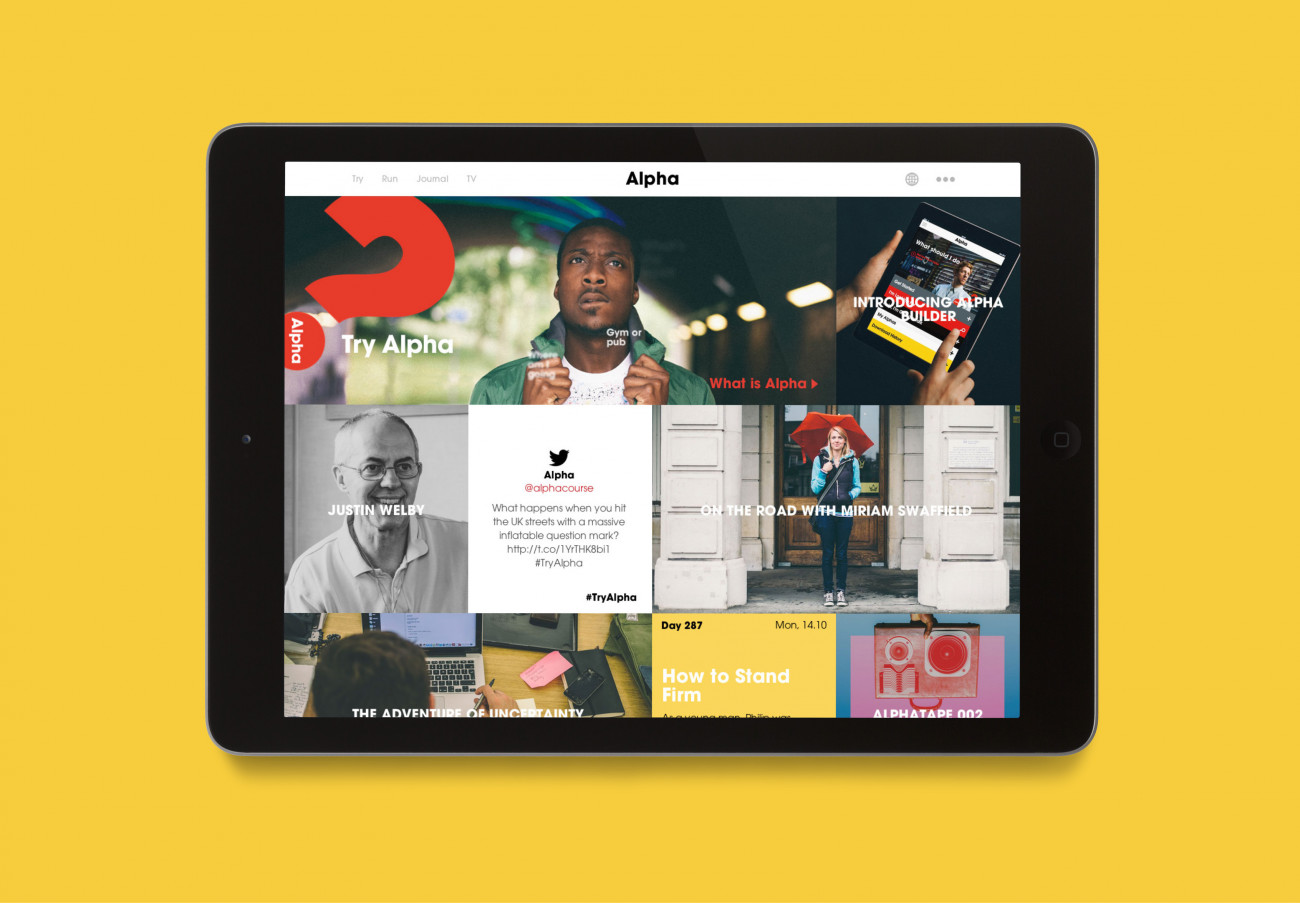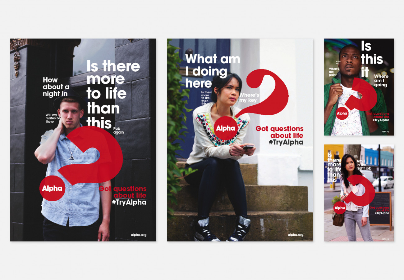 Brands are normally afraid of questions because it makes them look unsure of their position. This was perfect for Alpha who want people to openly explore questions of the Christian faith. Alpha enables people to explore Christianity through its course run in 112 languages with an audience of over 22.5 million. Our aim was to design a brand that worked in 160 countries, across new digital platforms as well as low-tech environments.