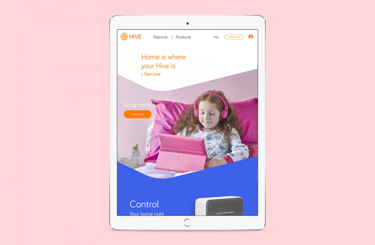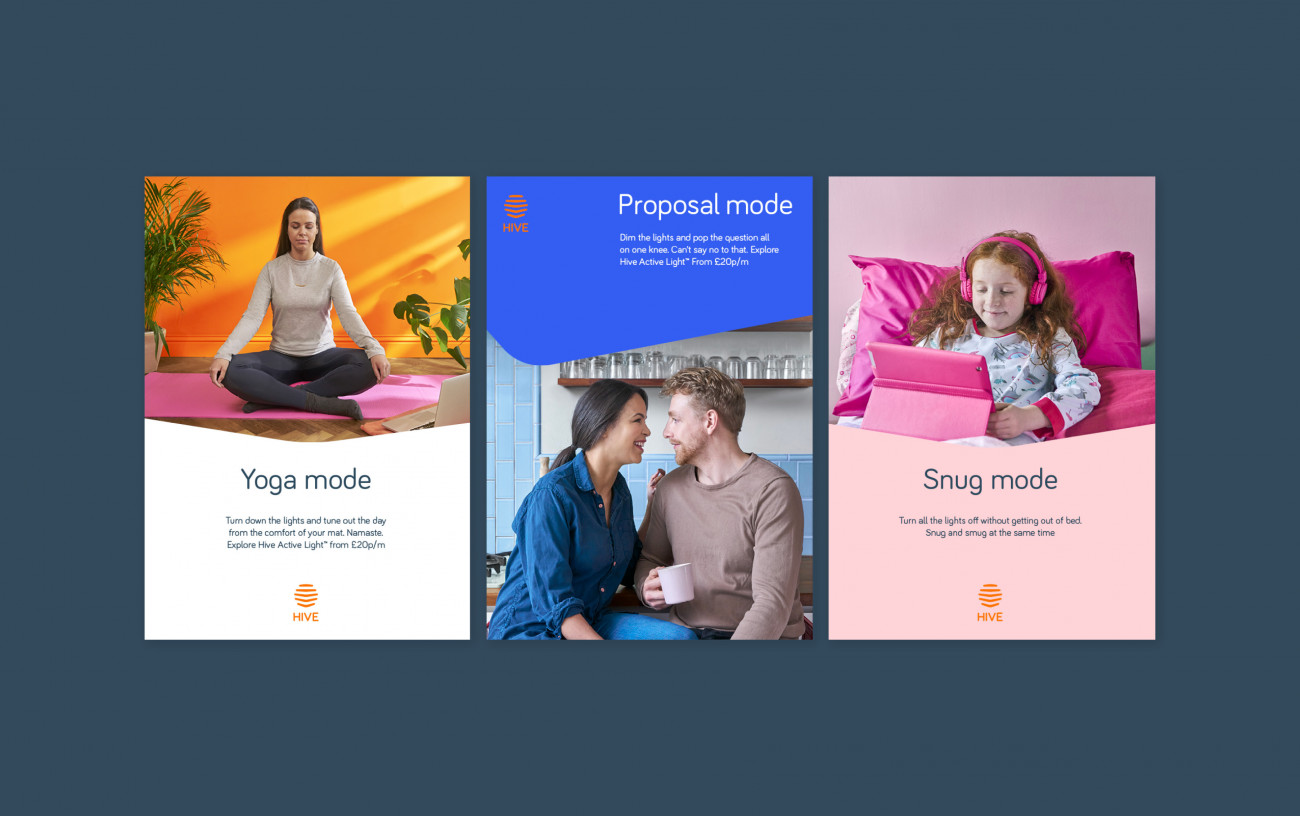 Our brief was to make the Hive brand feel friendly and human whilst creating a design system that could stretch across all touchpoints. We translated the newly developed strategy of ‘Living Brilliantly’ into a dynamic, living mark that uses panels and shifting perspectives to reflect the uniqueness of our homes. The colour palette was brightened to feel more approachable, friendly and energetic and the tone of voice crafted to enable the brand to tell more human stories about connected homes.