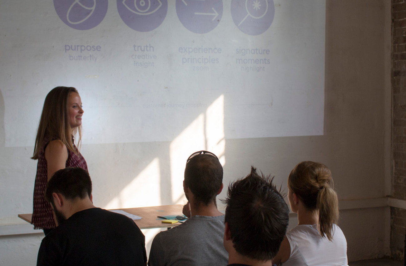 Previous speaking engagements include: Google Campus, Arts University Bournemouth, D&AD student events, Service Design Fringe Festival, London and LadiesthatUX London on subjects such as: 'People centred brands,' 'Look Out: ways to collaborate,' 'Designing for emotion,' and 'Design Journeys.'
